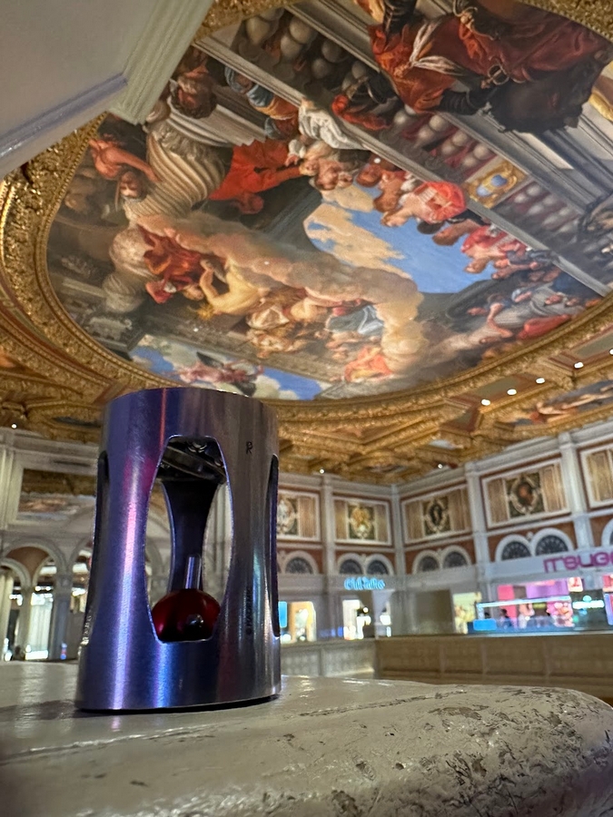 BEARING má laserem vypálené logo společnosti na protáčející se zátce a